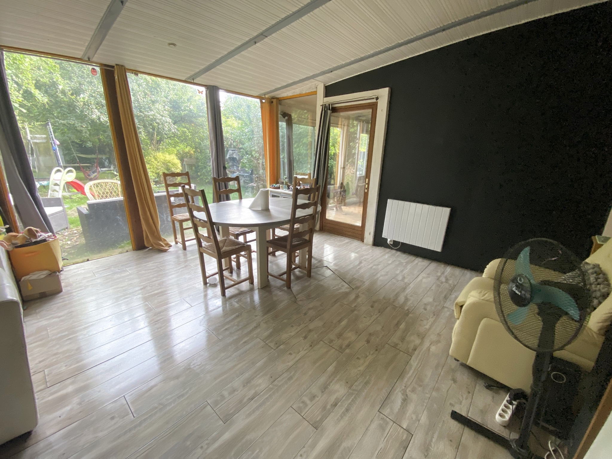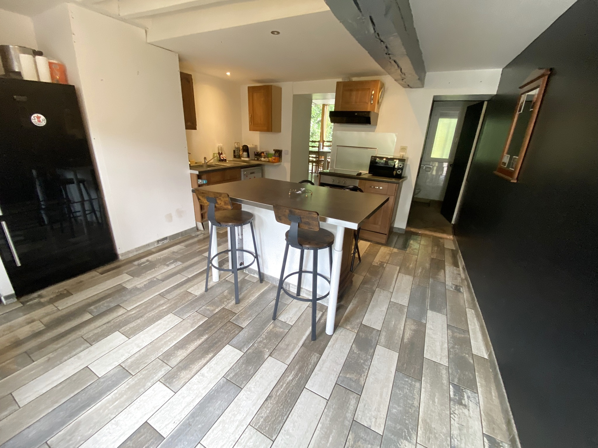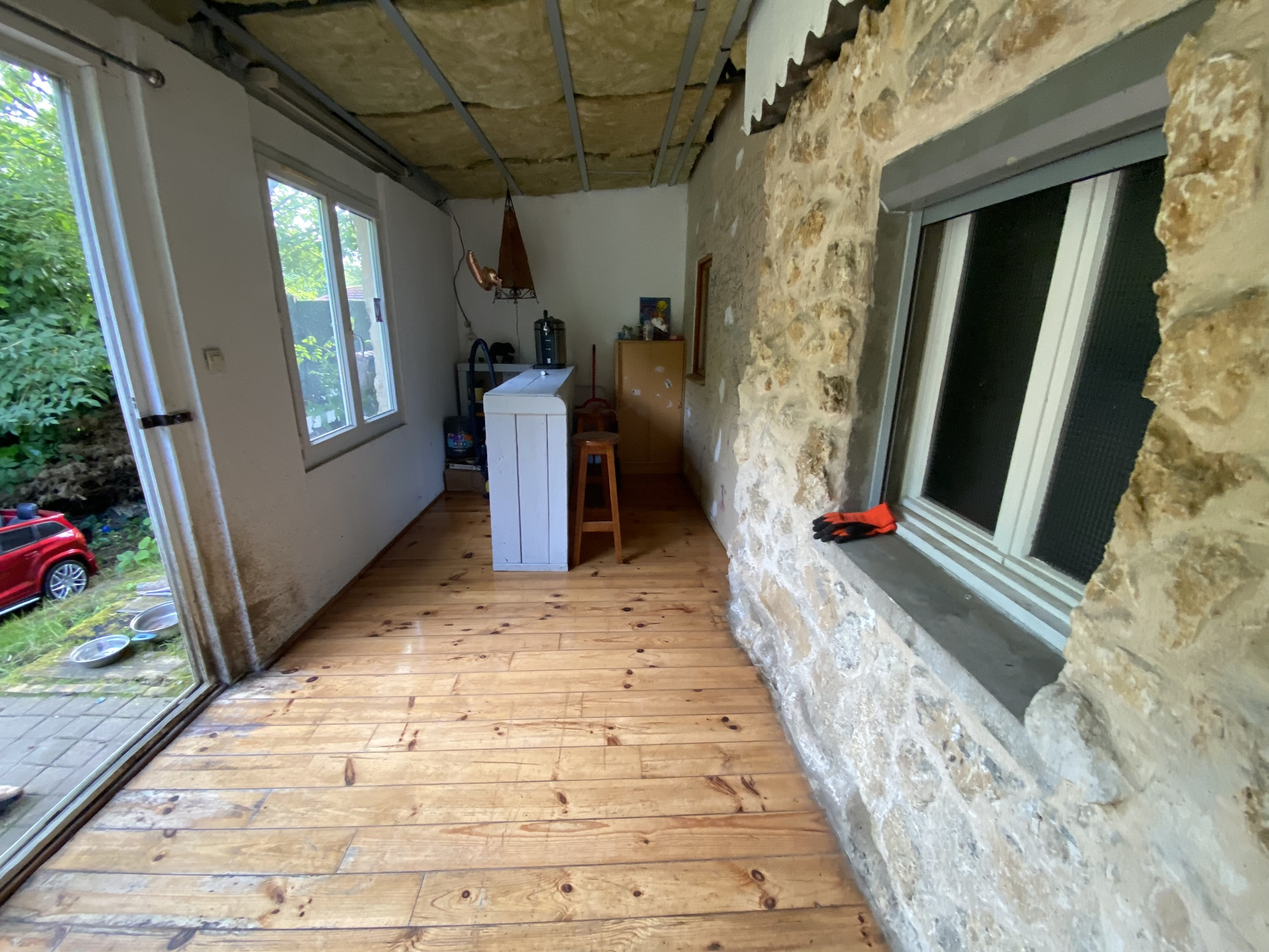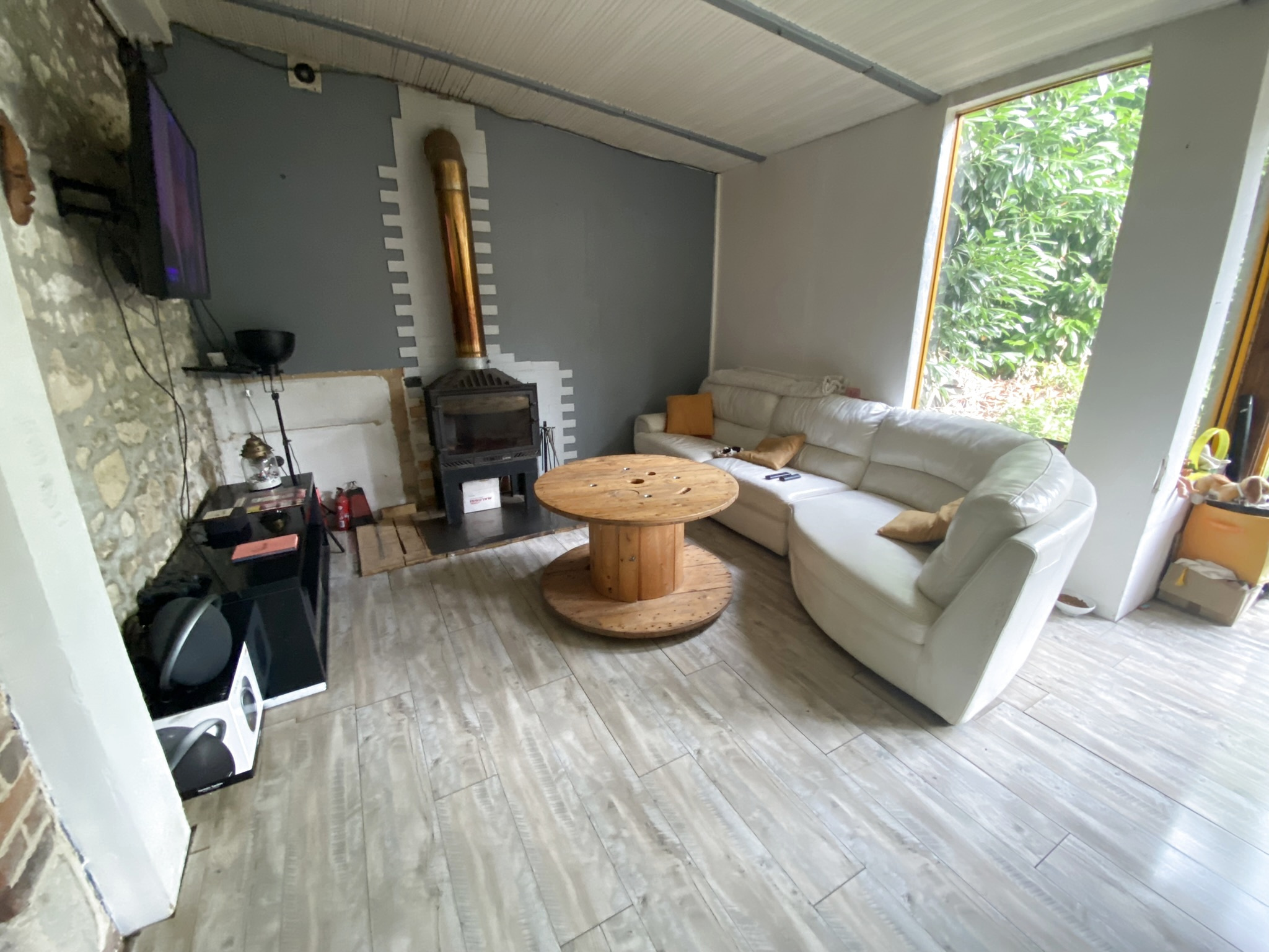 Cette longère vivable de plain-pied vous offre cuisine, une chambre, salle de bain et WC complétés par le salon-séjour donnant sur le jardin arboré.